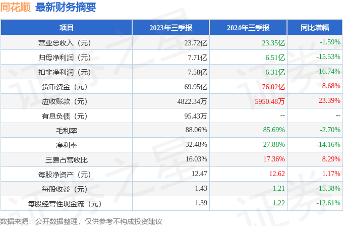 股票在线配资开户 同花顺(300033)2024年三季报简析: 净利润减15.53%, 三费占比上升明显